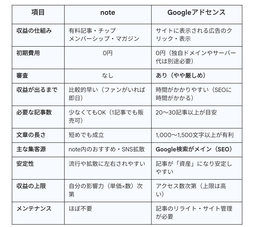 表を見るかぎりではnoteもアドセンスも一長一短のように見えますが、実際両方利用している私からすると圧倒的に「Googleアドセンス」です