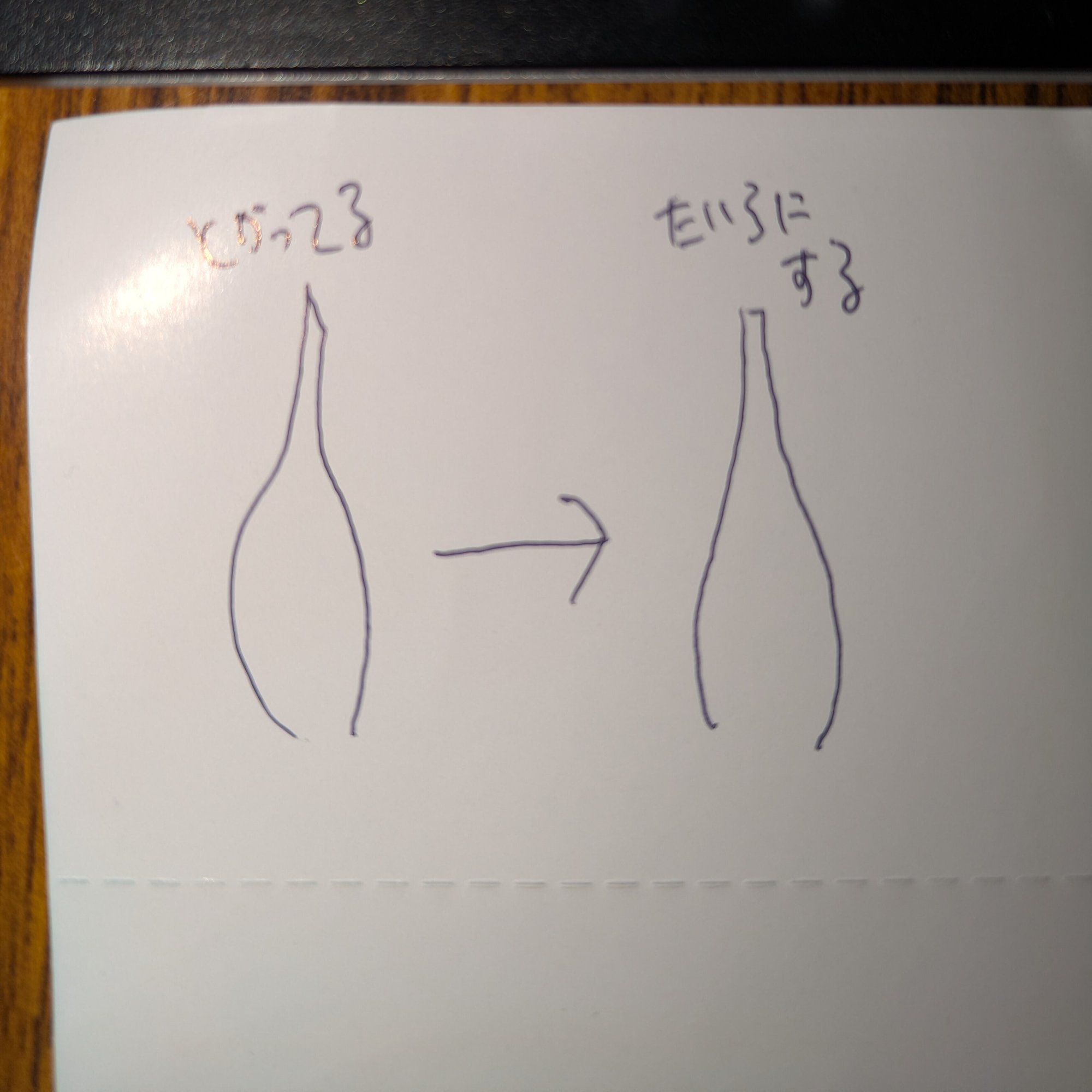 先日買ったガラスペンですが、実は3本のうち二本が50文字ぐらいしか書けず、ペン先を削るかどうか悩んでいましたが、意を決して削ることにしました。