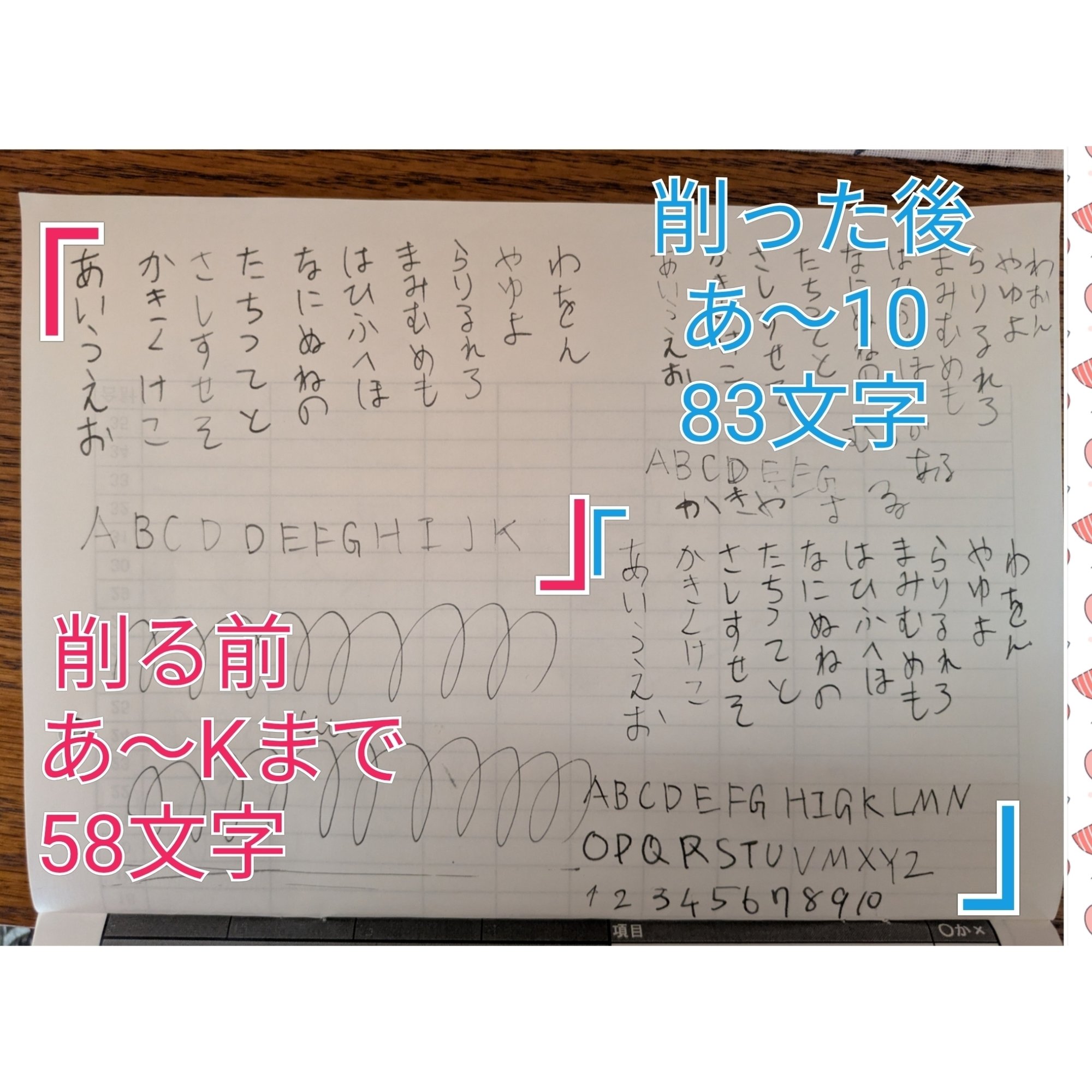 58文字から83文字まで書けるようになりました。